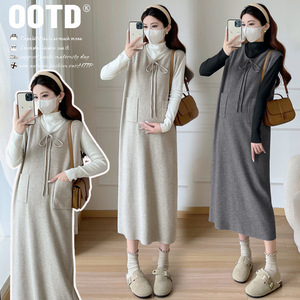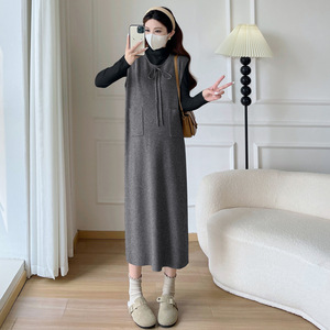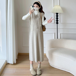 2025时尚气质系带秋冬毛衣背心裙孕妇装两件套
