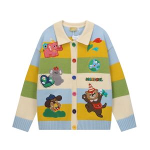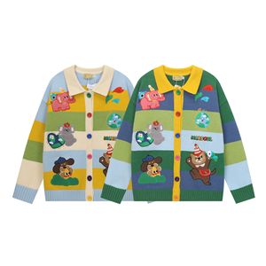 2025秋季美式复古风卡通拼接撞色开衫毛衣外套趣味保暖情侣针织衫