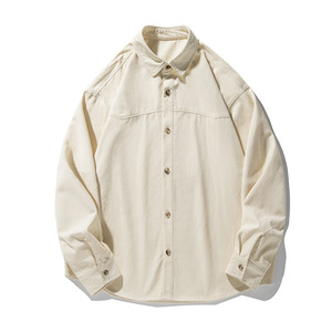 质感砂洗纯棉长袖衬衫春季款复古分割拼接设计美式宽松衬衣外套q