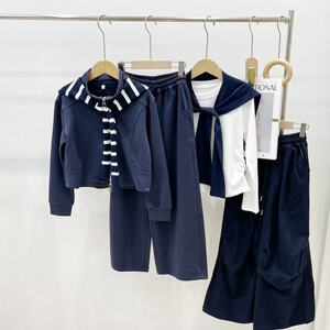 100902.一件代发女童秋季纯色休闲圆领卫衣运动宽松休闲披肩套装