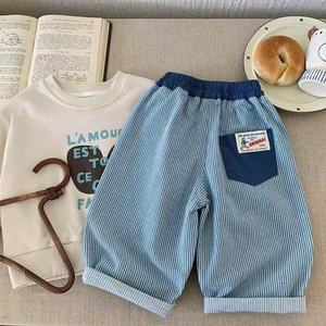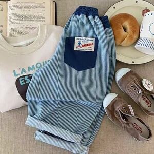 儿童休闲裤条纹男秋冬款小童直筒裤长裤潮宝宝纯色哈伦裤女新款