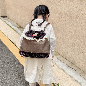 甜美森系可爱波点亲子双肩包抽绳蕾丝宝宝斜挎包大容量格子儿童包