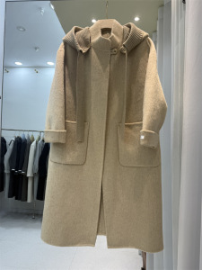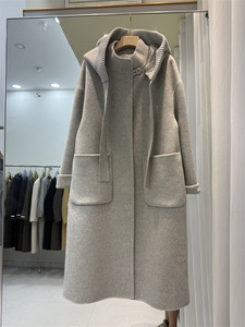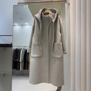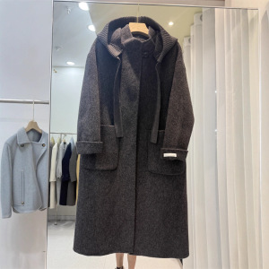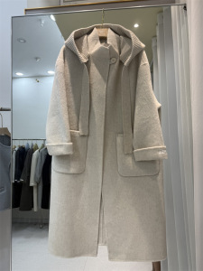 东大门韩系羊毛大衣女毛呢外套双面设计感长款连帽可脱卸跨境女装