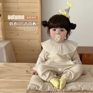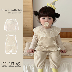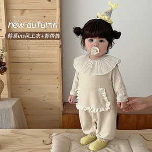 【上衣+背带裤套装】韩版春秋款婴儿连体衣花边超软洋气衣服女宝
