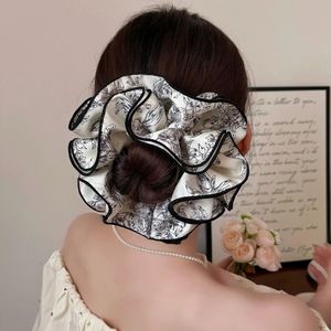 黑灰色蝴蝶结印花约10cm大肠发圈