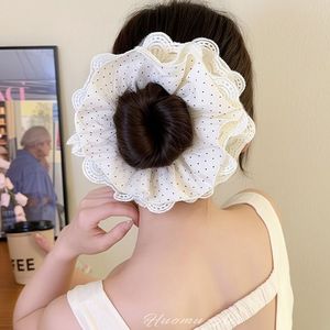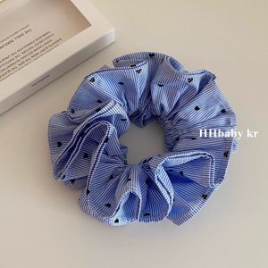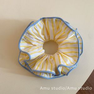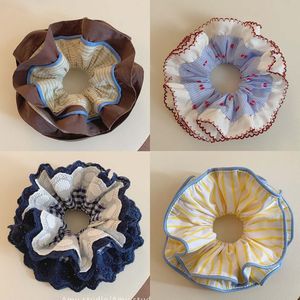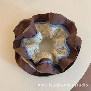 韩国新款复古咖蓝条纹花边双层发圈高级气质马尾丸子头扎发头绳女