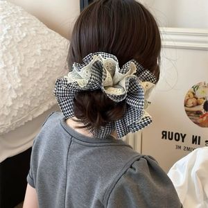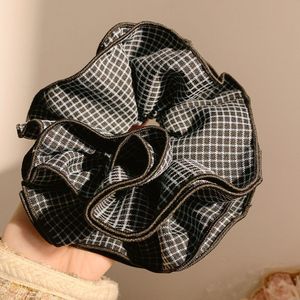 黑白格纹拼接蕾丝四层约15cm大肠发圈
