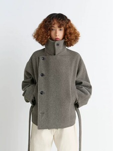 苏力羊驼绒立领秋冬双面呢大衣女阔版显瘦小个子系带毛呢外套女