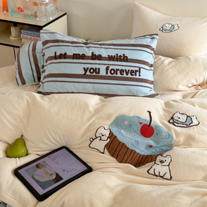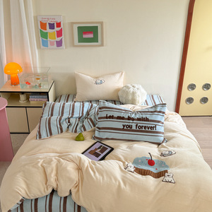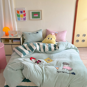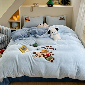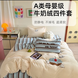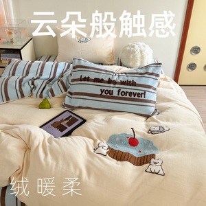 卡通A类230克高克重原创设计毛巾绣牛奶绒四件套秋冬加厚床上用品