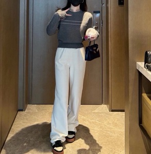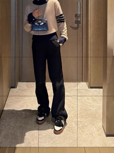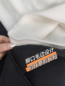 2025冬季纯棉舒适加绒保暖宽松休闲毛边阔腿裤窄版直筒卫裤女冬
