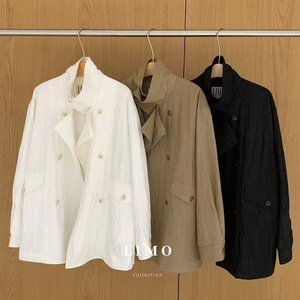 【不退换】双排扣植物染立领极简气质风衣肌理感面料休闲百搭外套