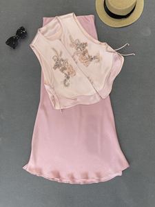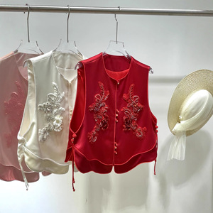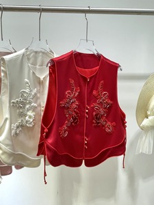 南油2025早秋款轻奢国风重磅醋酸马甲精致重工钉珠背心上衣不退换