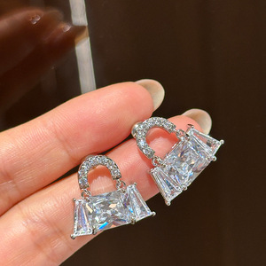 银针镶钻包包时尚简约吊坠耳环小众精致百搭耳钉轻奢高级感耳饰女
