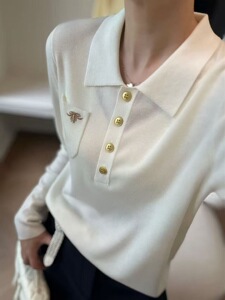 欧洲站2025早秋新款韩版polo领刺绣针织衫女宽松洋气上衣潮
