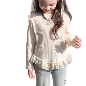 女童T恤2025秋季新款儿童蕾丝花边上衣长袖中大童打底衫休闲