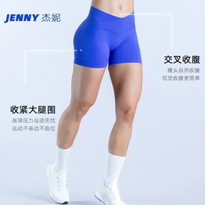 杰妮新款跨境交叉前V运动短裤女无缝消光跑步健身服三分裤瑜伽裤