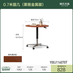 源氏木语实木升降茶几客厅可移动黑色圆几家用餐桌小户型沙发边几