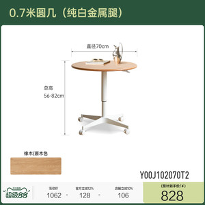 (2)(橡木原木色)0.7米圆几(纯白金属腿)(700*700*(560-820)mm)Y00J10