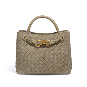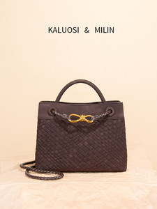 秋冬新款麂皮绒金属扣绒面编织包托特包通勤单肩斜挎手提托特方包