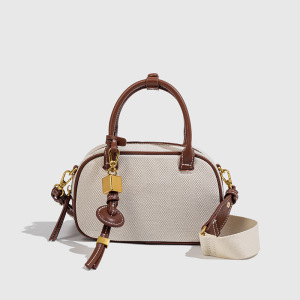 爆款秋季女包辑线装饰迷你手提保龄球高级复古时尚斜跨小包