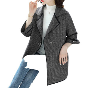 中年女装新款上衣宽松大码针织开衫时尚妈妈春秋气质毛呢加厚外套