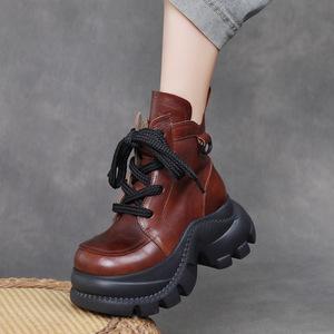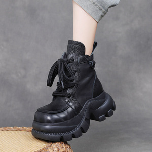 吉树25秋冬真皮休闲马丁靴女头层牛皮厚底高跟短靴轻奢小个子单靴