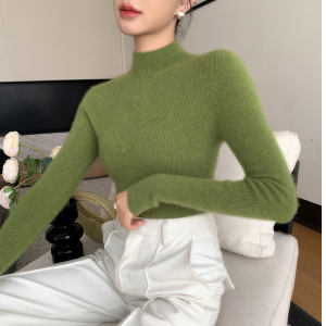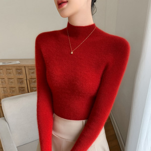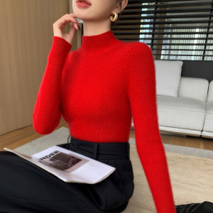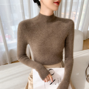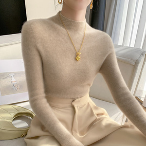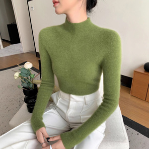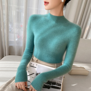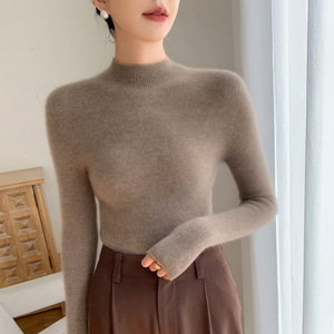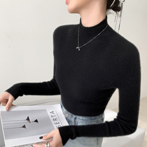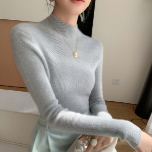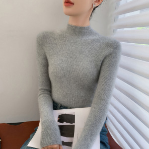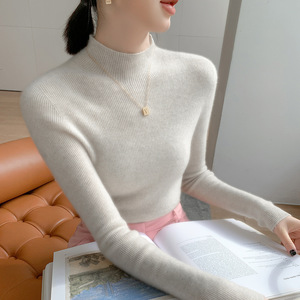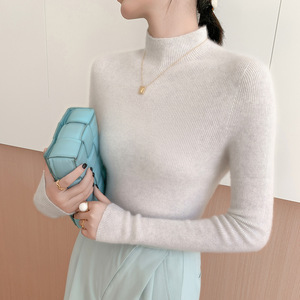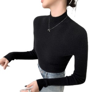 山羊绒衫女式修身毛衣一线成衣半高领抽条针织衫内搭无缝一体百搭