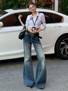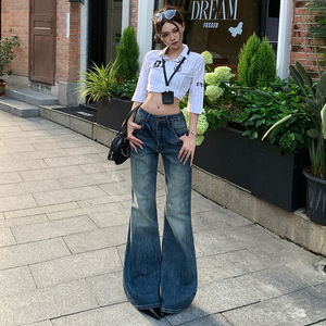 美式辣妹低腰弹力微喇叭牛仔裤女2025年秋季新款百搭直筒喇叭裤子