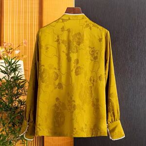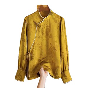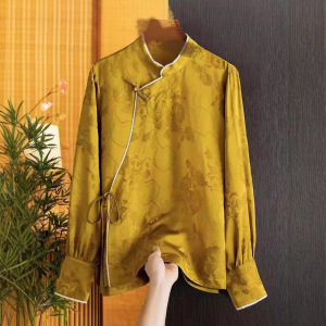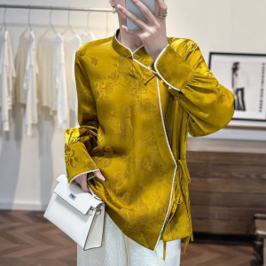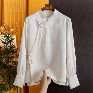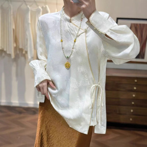 新中式人丝提花系带简约时尚小衫女2025秋季新品时尚优雅长袖上衣