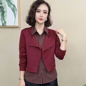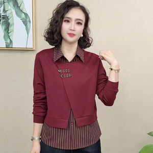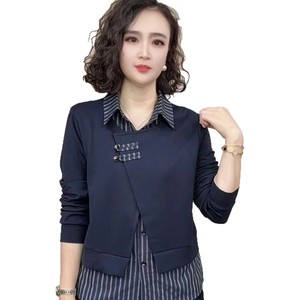 一件代发直播爆款20251秋季新款时尚拼接假两件设计翻领休闲上衣