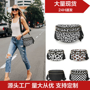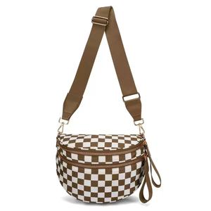 跨境外贸女士格子斜挎包潮时尚百搭尼龙大容量贝壳运动单肩包便携