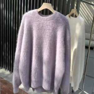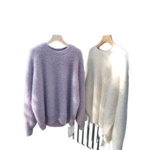 软糯紫色水貂绒套头毛衣女秋冬感慵懒宽松外穿温柔风针织上衣