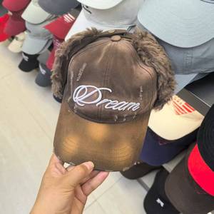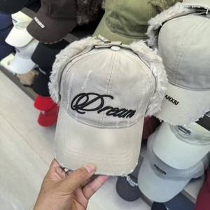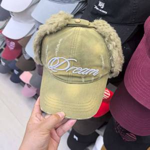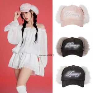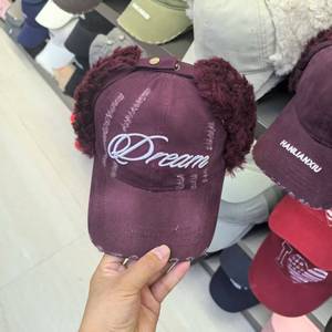 2025韩版雷锋帽宁艺卓同款韩国设计师品牌拼接毛绒字母刺绣棒球帽