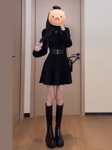2025年秋季新款大码赫本风连衣裙小黑裙设计胖MM显瘦收腰时尚气质