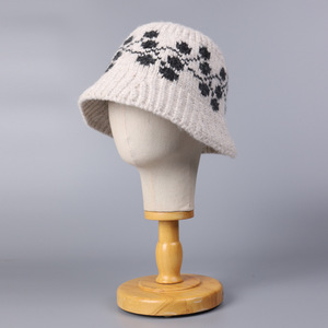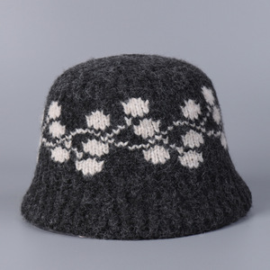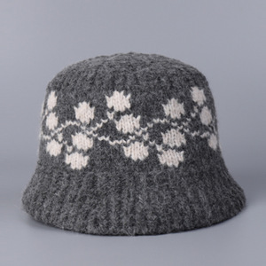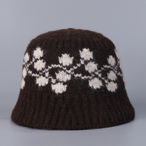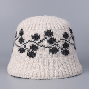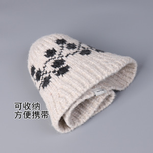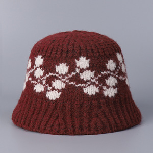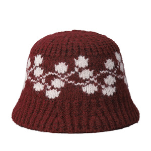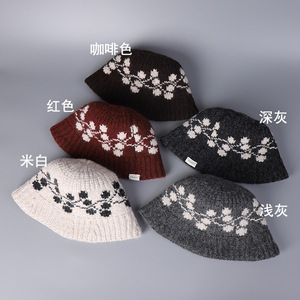 复古红色针织盆帽女秋冬素颜遮脸百搭渔夫帽保暖护耳提花毛线帽子