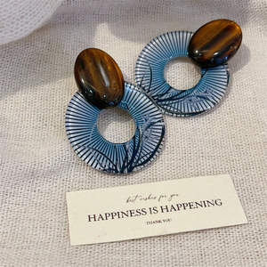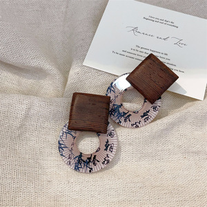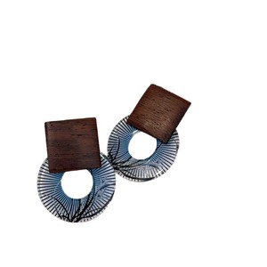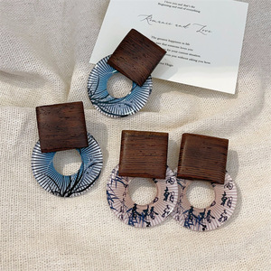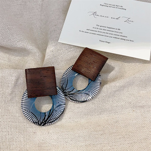 兰亭集序清冷复古新中式圆形花纹耳钉小众设计高级感树影木质耳环