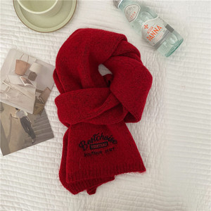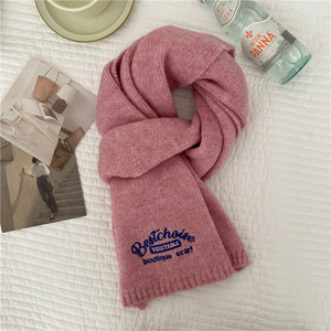 2025新款针织毛线围巾女生秋冬季高级感韩版保暖字母围脖护颈披肩