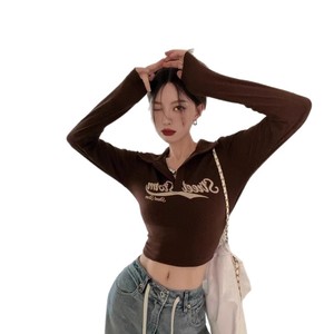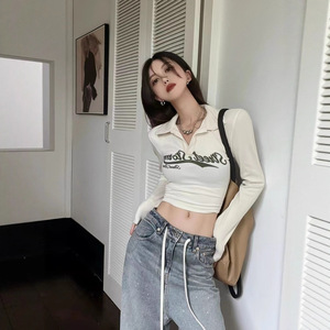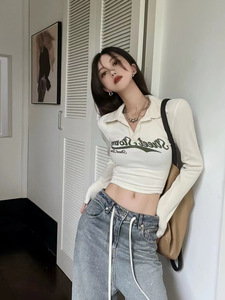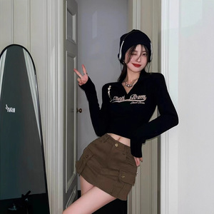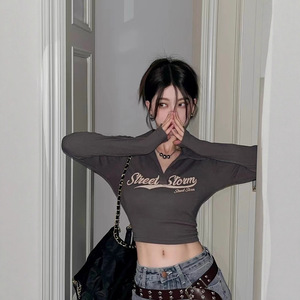 美式复古紧身长袖T恤女辣妹高腰露脐内搭修身显瘦短款上衣打底衫