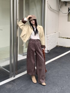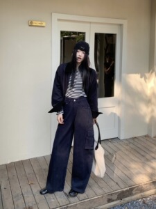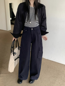秋上新 美拉德咖色弯刀裤牛仔裤女 秋冬高腰显瘦宽松美式工装裤子