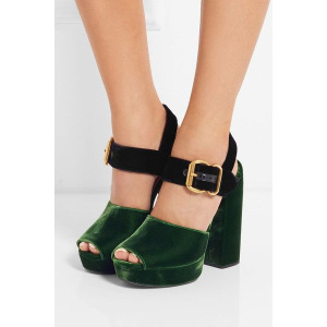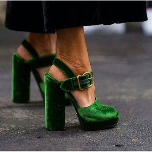 外贸跨境夏欧美高跟凉鞋女粗跟一字扣带露趾大码外贸罗马鞋丝绒