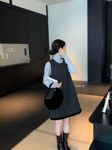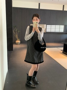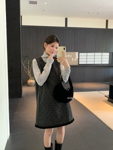 【WOW】miu系甜美植绒蝴蝶结拼接丝绒背心连衣裙(不含内搭 配包包