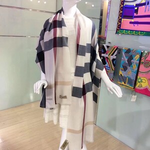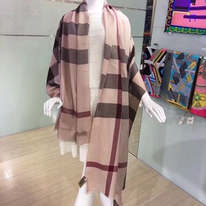 欧美大牌跨境批发经典英伦格纹100%纯羊绒超大张围巾披肩细软亲肤