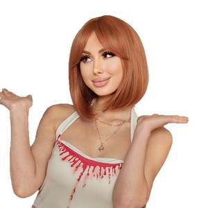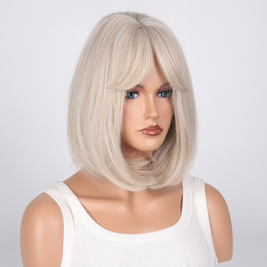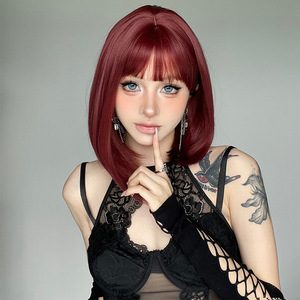 欧美跨境假发女酒红色波波头短直发多色日常齐刘海化纤全头套假发