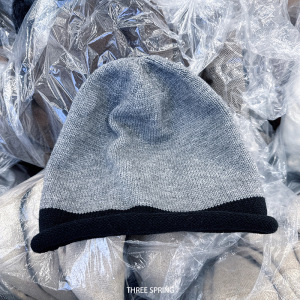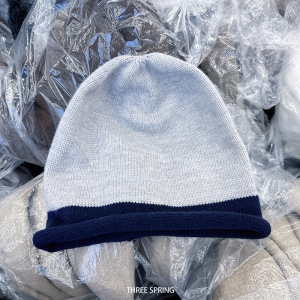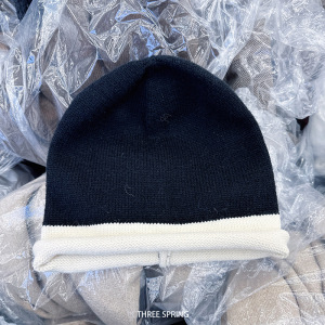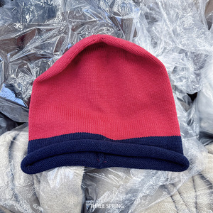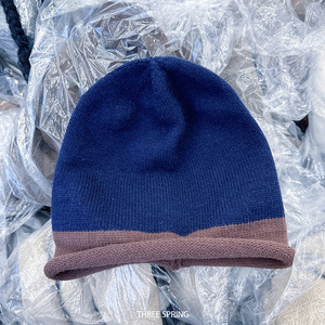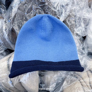 批发韩国2025年秋冬新款日系卷边羊毛混纺针织帽女拼色简约毛线帽