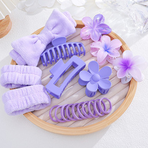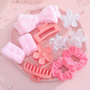 秋冬新款束发带头饰女蝴蝶结洗漱带哑光磨砂花朵抓夹弹力发圈批发