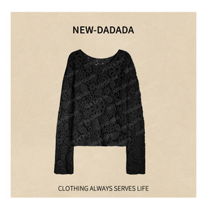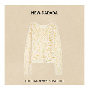 利达 NEW DADADA【纯光之森】黄色镂空针织衫女钩花设计长袖上衣