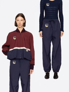 南油高端女装宽松休闲手钩拼接拉链开襟夹克外套休闲长裤两件套装