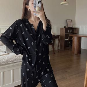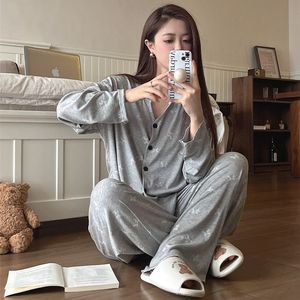 莫代尔睡衣女春秋季新款韩版ins开衫长袖慵懒风家居服套装可外穿