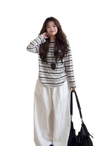 韩系黑色条纹防晒罩衫长袖T恤女早秋慵懒宽松miu系空调衫薄款上衣
