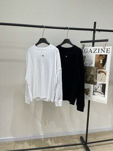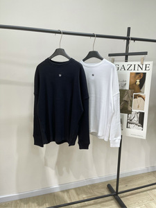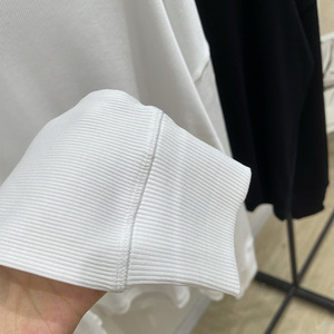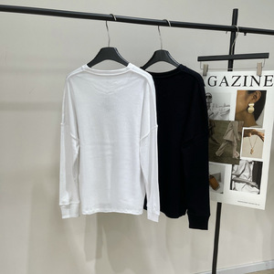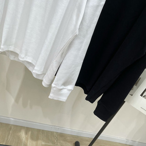 2025早秋黑白绞花刺绣宽松中长款圆领长袖T恤减龄显瘦休闲上衣女